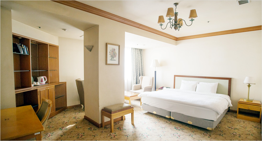 침실과 응접실이 별도로 이루어진 넉넉한 공간으로, 객실에서 회의 또는 업무 를 보실 수 있도록 꾸며져 있으며 욕실에 설치된 개인 사우나 도크는 하루의 피로를 말끔히 씻게 해 줍니다.