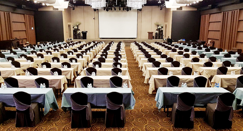 리셉션 1,000명, 연회550명의 인원을 동시에 수용 할 수 있으며, 최신 음향과 조명 및 Full HD 초고화질 대형 스크린 시설 등이 마련되어있는 대연회장입니다. 국제회의, 디너쇼, 세미나, 패션쇼, 워크샵, 결혼식 피로연, 이·취임식 등의 각종 대형행사를 진행 할 수 있습니다.